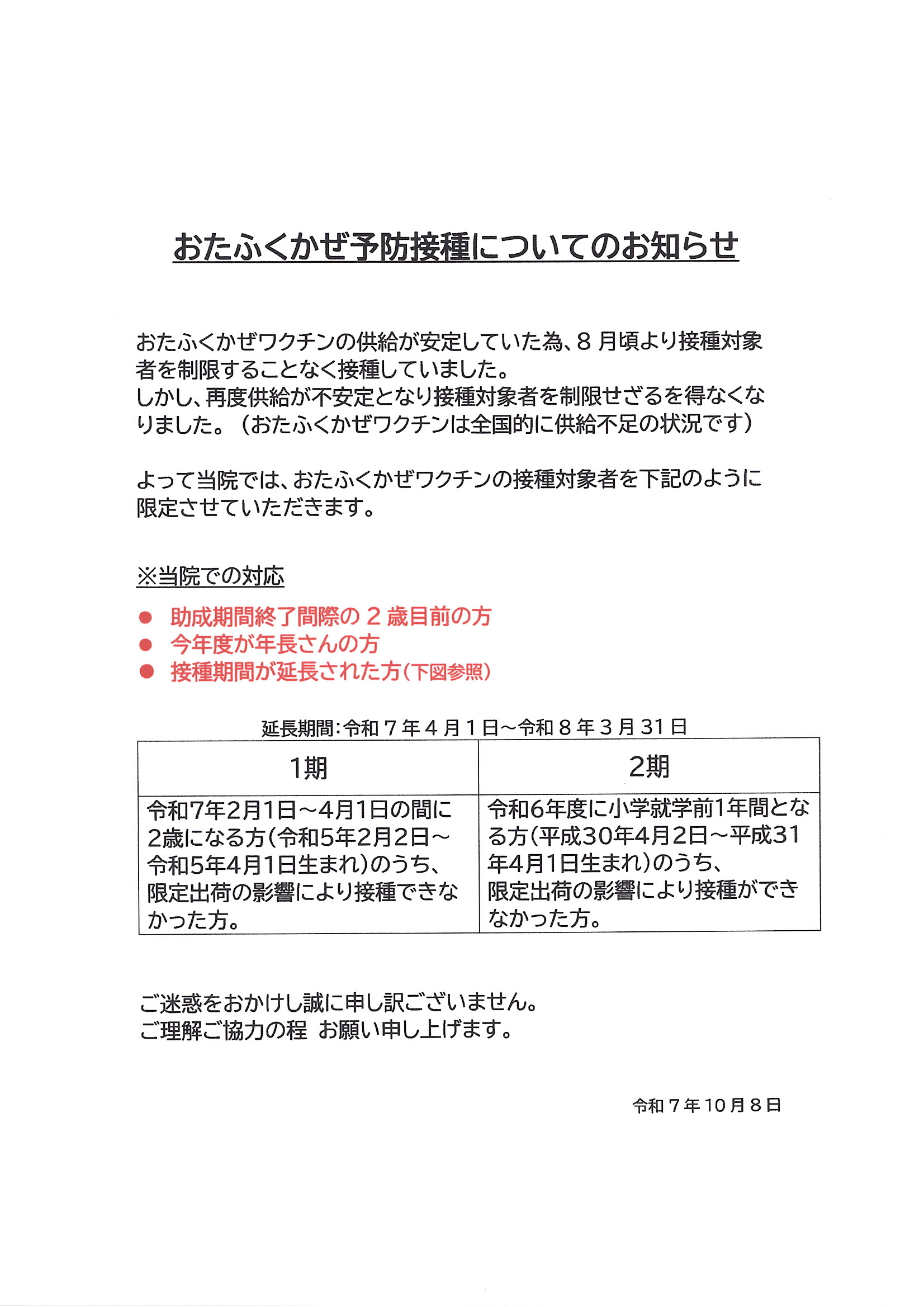 インフルエンザワクチンの決まり事として以下もご確認ください。